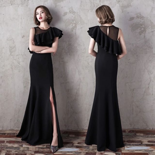 Dinner Classic Long Black Dress Shopee Malaysia